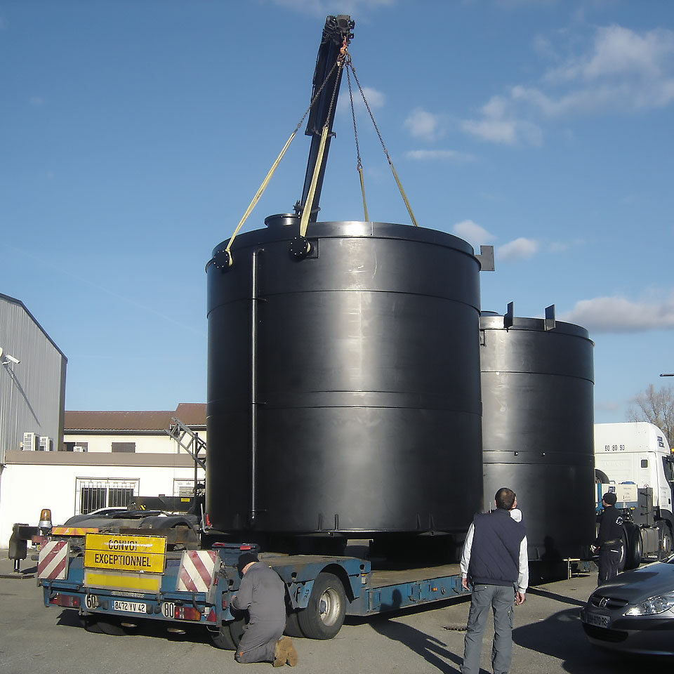 Our single- or double-jacketed tanks, from 1 to 80 m3, are ideal for transferring or storing water, corrosive products, foodstuffs and chemicals.